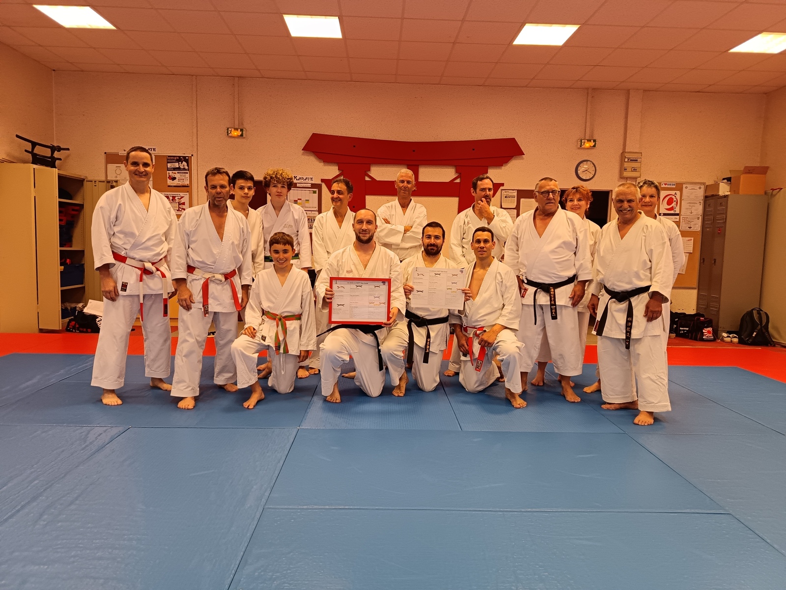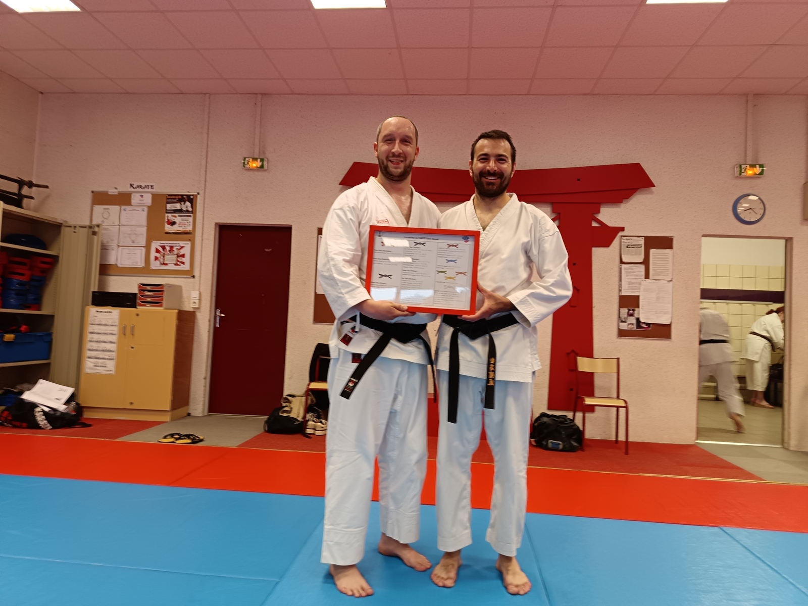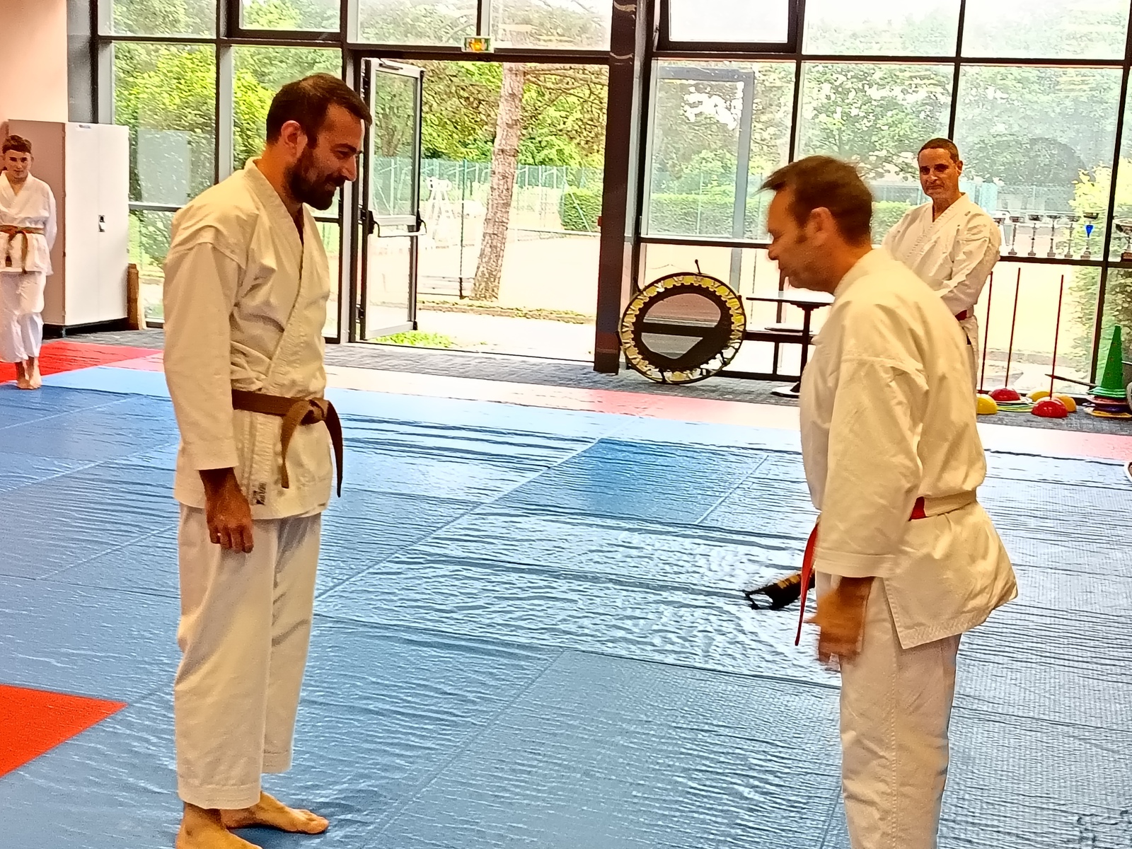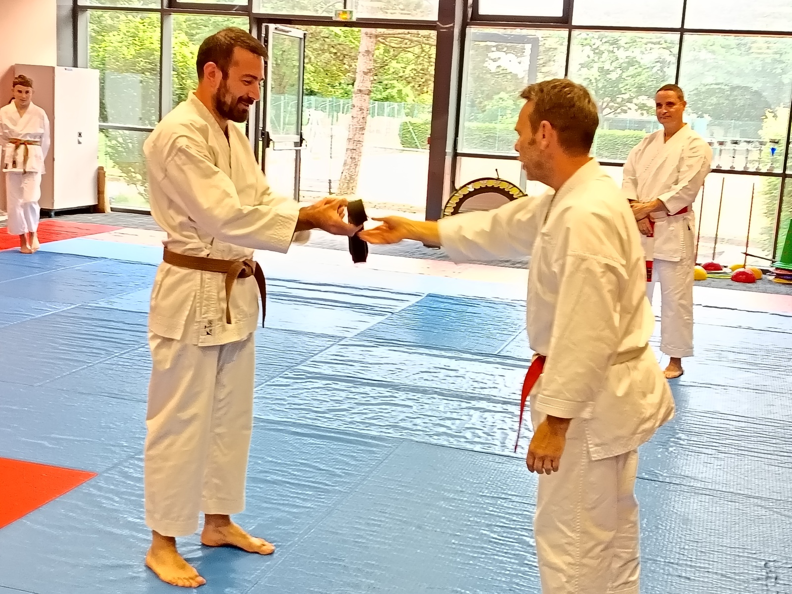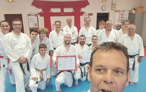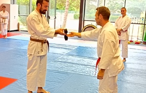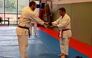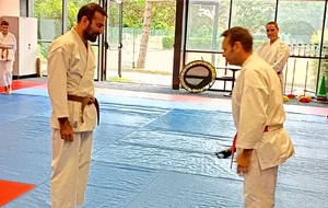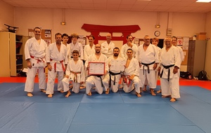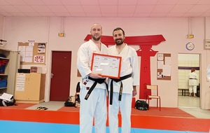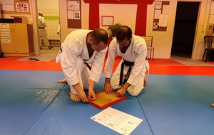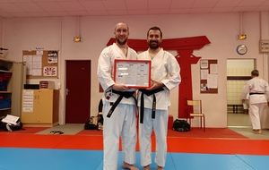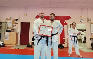 Ce mardi 12 mai, Martial Salvador, 7e Dan et de Christophe Rijo et David Merle,, tous les deux 6e Dan, ont supervisé l'examen de passage de Vincent et Florent. A l'issue des épreuves, les deux candidats ont obtenu les points nécessaires pour valider leur nouveau grade.