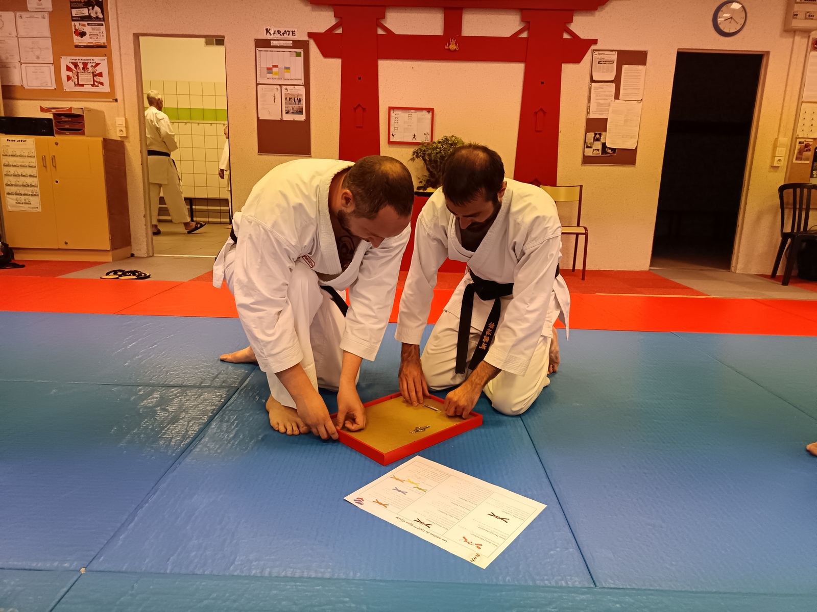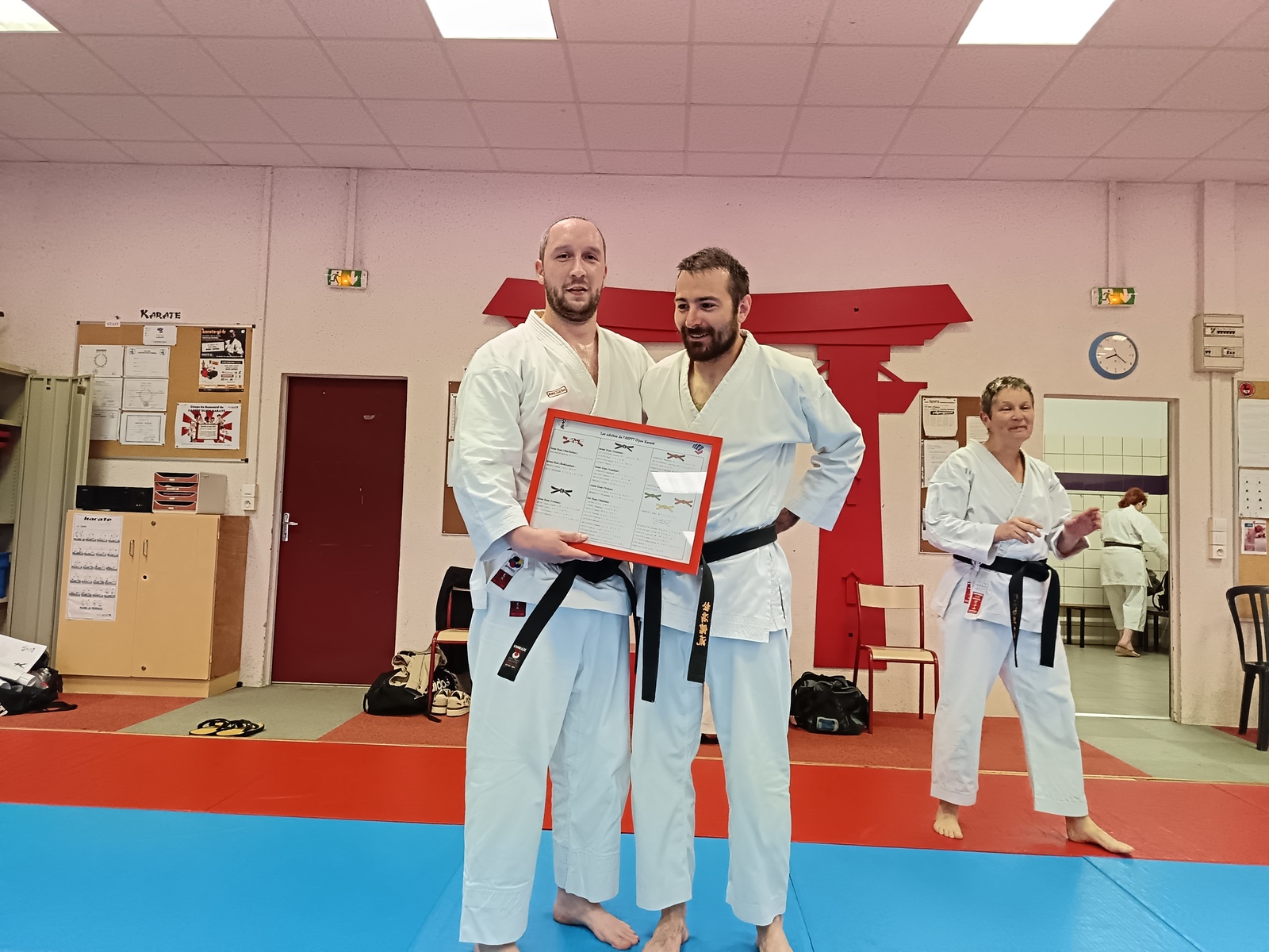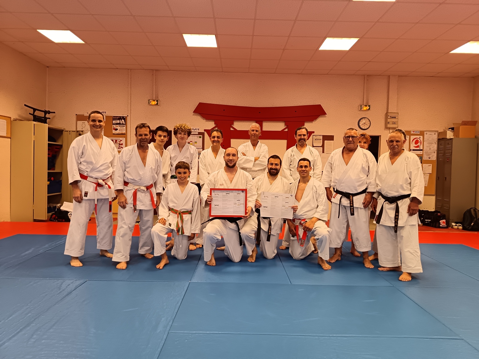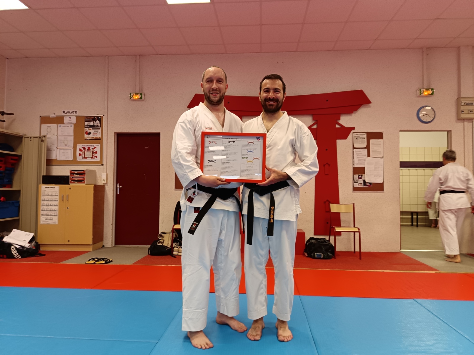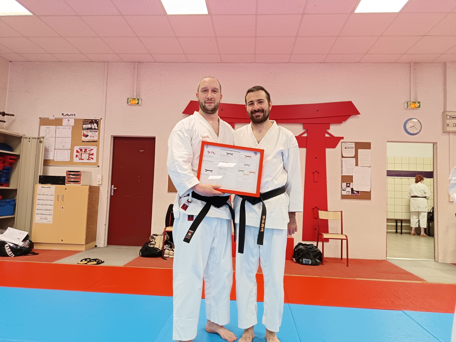 Ce mardi 12 mai, Martial Salvador, 7e Dan et de Christophe Rijo et David Merle,, tous les deux 6e Dan, ont supervisé l'examen de passage de Vincent et Florent. A l'issue des épreuves, les deux candidats ont obtenu les points nécessaires pour valider leur nouveau grade.